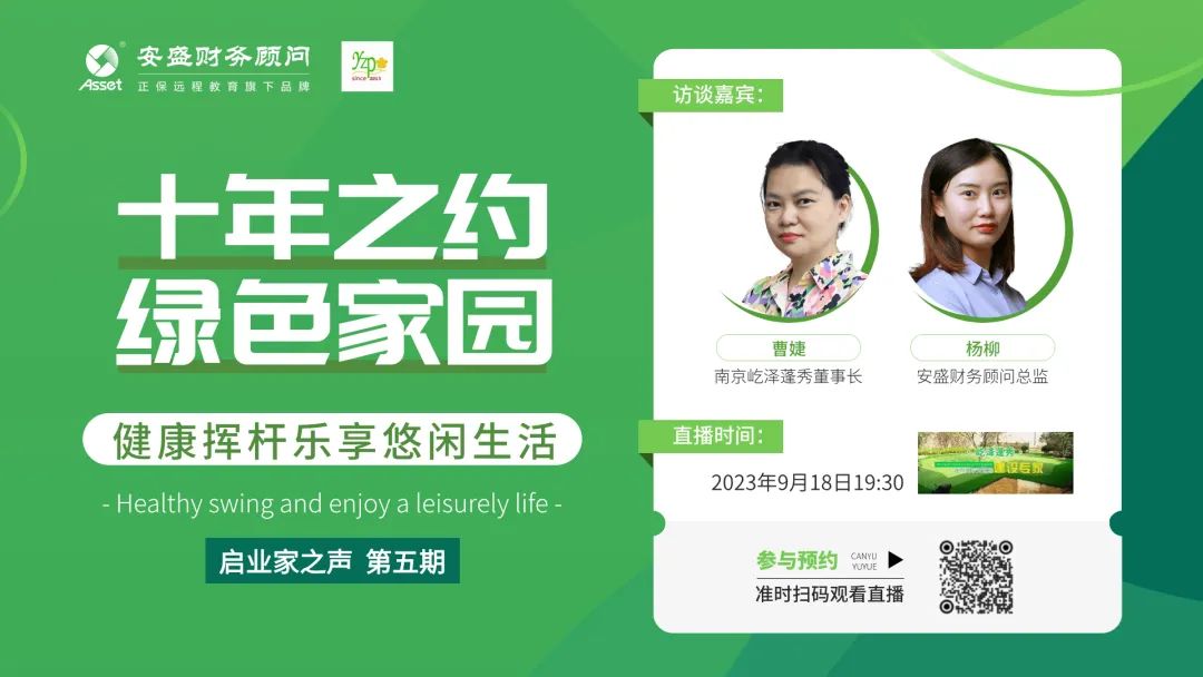 為進(jìn)一步探究這個(gè)話題,9月18日19:30,正保安盛財(cái)務(wù)推出《啟業(yè)家之聲》第五期:《【十年之約 綠色家園】健康揮桿樂享悠閑生活》主題訪談直播,帶大家了解庭院高爾夫的全貌,因它的強(qiáng)靈活性、小占地面積、易養(yǎng)護(hù)打理、四季通用等優(yōu)勢,而受到大眾的喜歡。