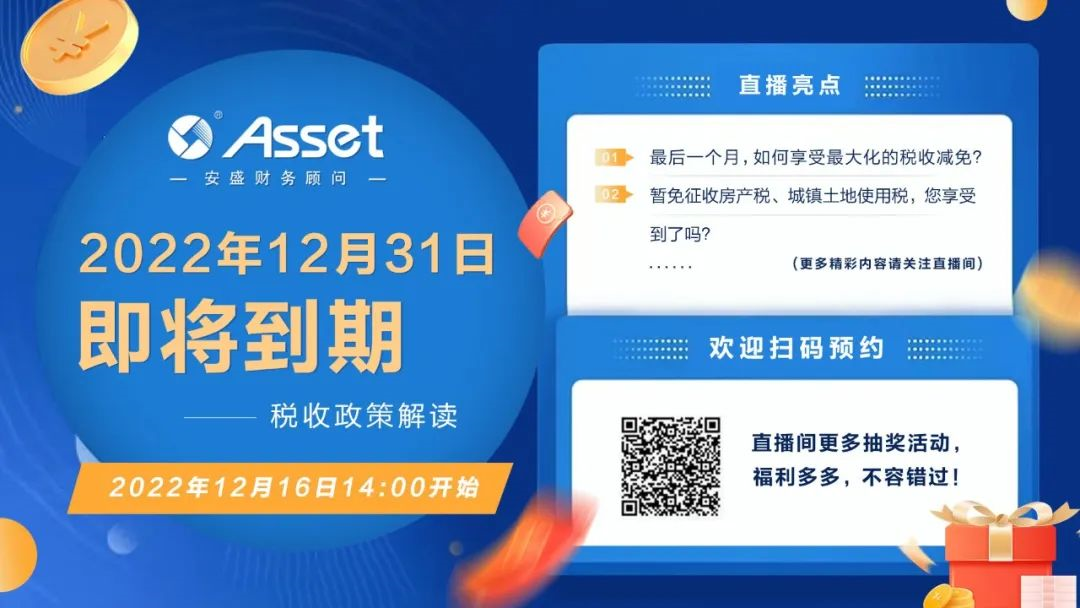 2022年國家出臺了一系列對企業(yè)的扶持優(yōu)惠政策,稅收優(yōu)惠政策有利于企業(yè)減輕企業(yè)的稅收壓力,降低企業(yè)的涉稅風險,優(yōu)化企業(yè)的稅務成本結構。時值年末,一些階段性稅收政策即將到期,企業(yè)應高度關注是否滿足申報條件、后續(xù)政策是否會延續(xù)等一系列問題。